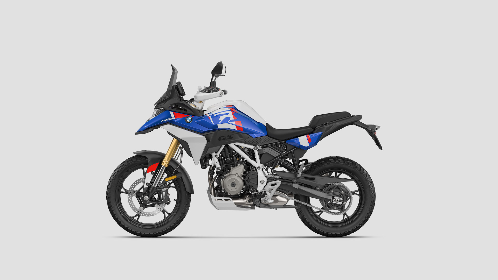 BMW F 450 GS tekee arjesta ajopäivän – kevyesti ja hauskasti. Uusi, täysin uudelleen kehitetty kaksisylinterinen 48 hv moottori ja vain 178 kg (393 lbs) ajovalmiina tekevät pyörästä ketterän kumppanin niin työmatkalle kuin soratiellekin.
