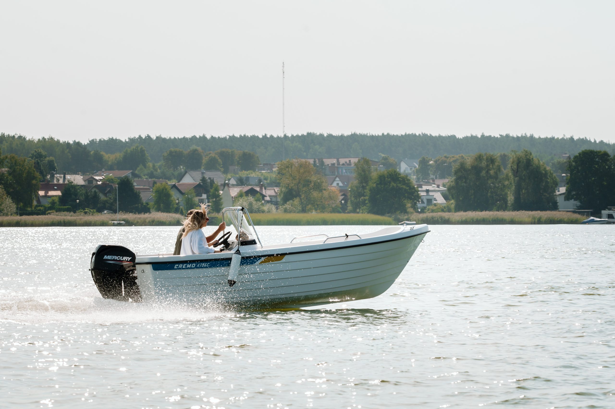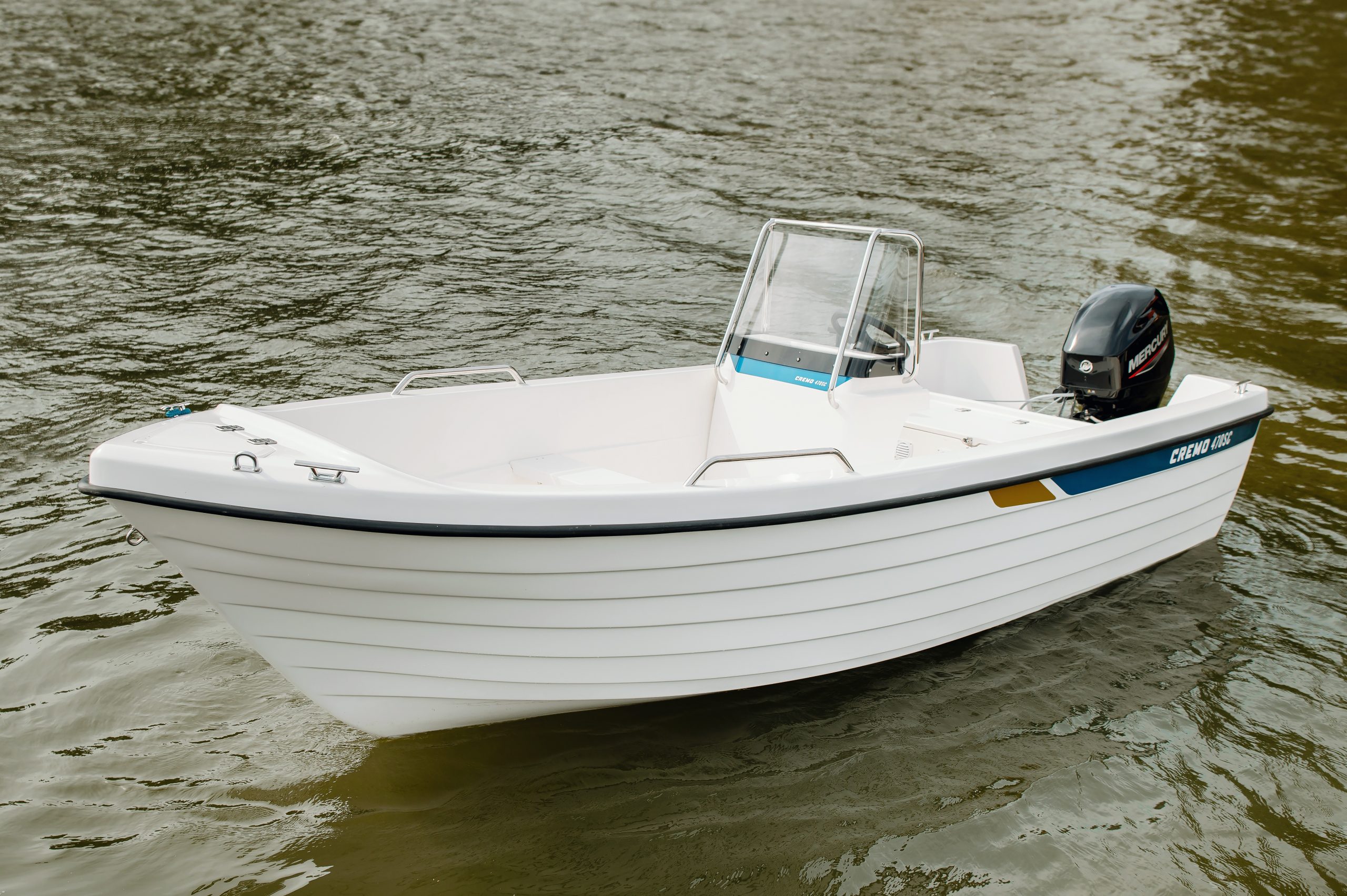 CREMO 470 SC on sporttinen vene sivukonsoliohjauksella ja tuulilasilla.